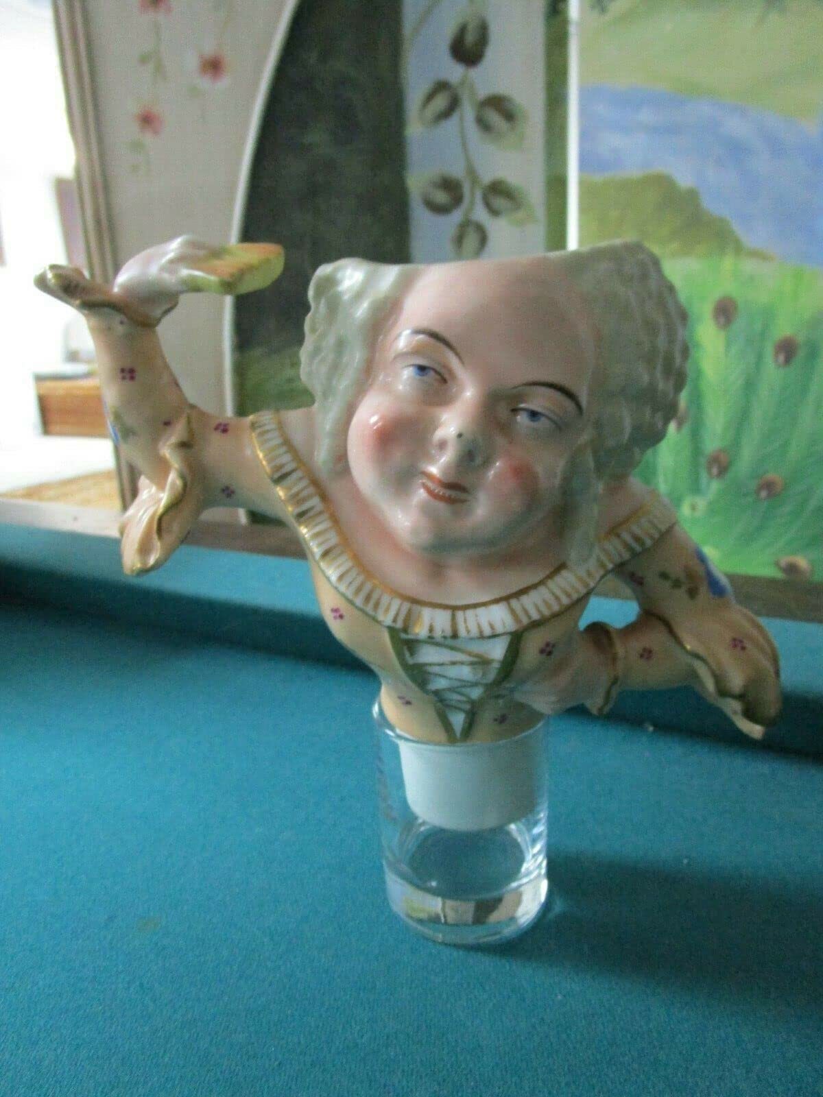 ANTIQUE LADY VEILLEUSE THEIERES Teapot FRANCE PARTIAL TEAPOTNO BASE OR HAT, ONLY THE TEA POT BODY, SHOWN SITTING IN A GLASS CUP. 6 X 8" [aD]