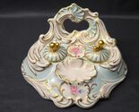 Hand painted antique Limoges double inkwell inkstand in excellent condition, no damage and only minor signs of wear. Measures 7.5" x 6" and is nearly 4" tall.
