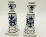 - Antique Meissen Porcelain Blue Onion Candle Holder 6” Pair Germany Hand Painted