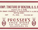 Antique Pharmacy Label COMP. TINCTURE OF BENZOIN Prosser's Drug Store Hellertown