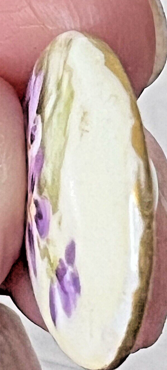 - Antique Porcelain Button Hand Painted Purple Violets About 1 1/8 x 7/8 inches