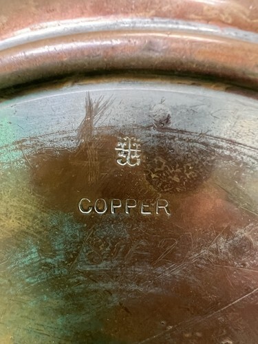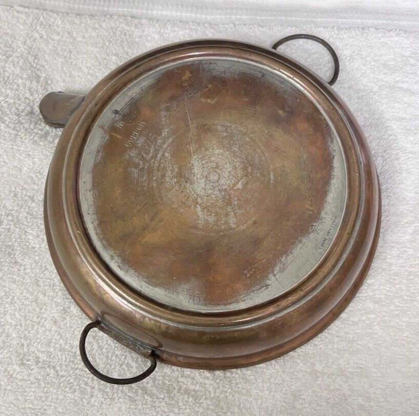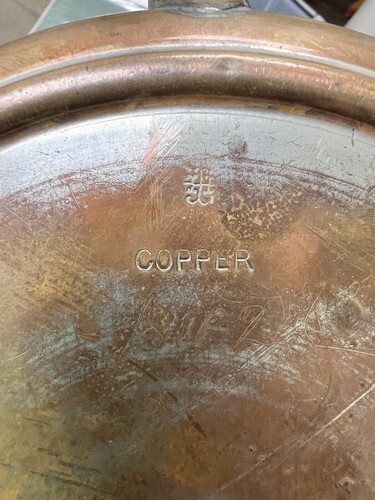 - Antique Primitive Copper Proclain Warming Plate Victorian Cobalt Copper White