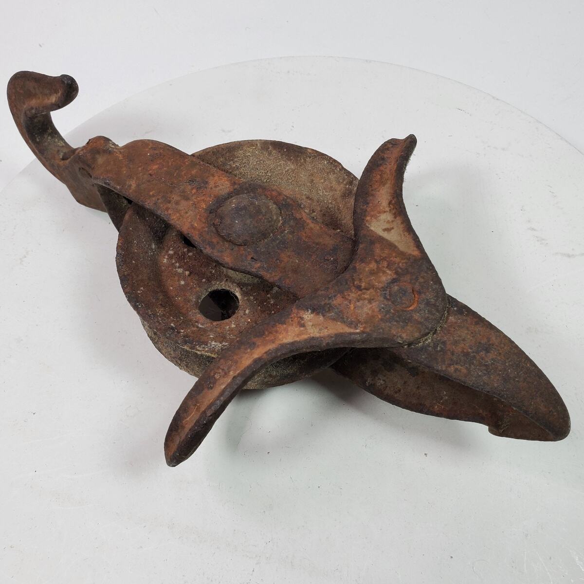 - Antique Primitive Farmhouse Cast Iron Hay Trolly Drop Pulley Farm Tool