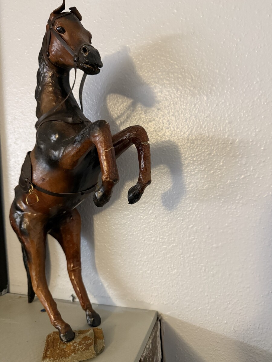 Antique Leather over I imaging some plastic form. Good shape for it's age.