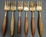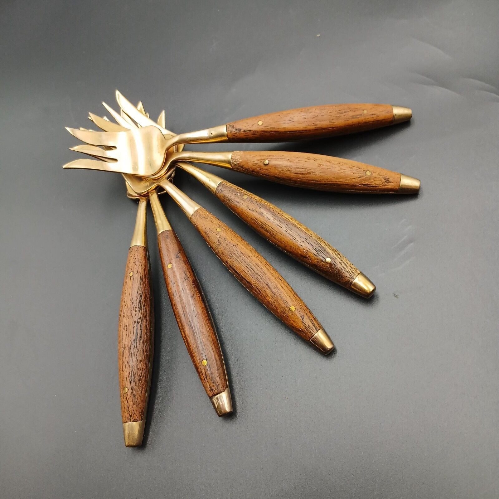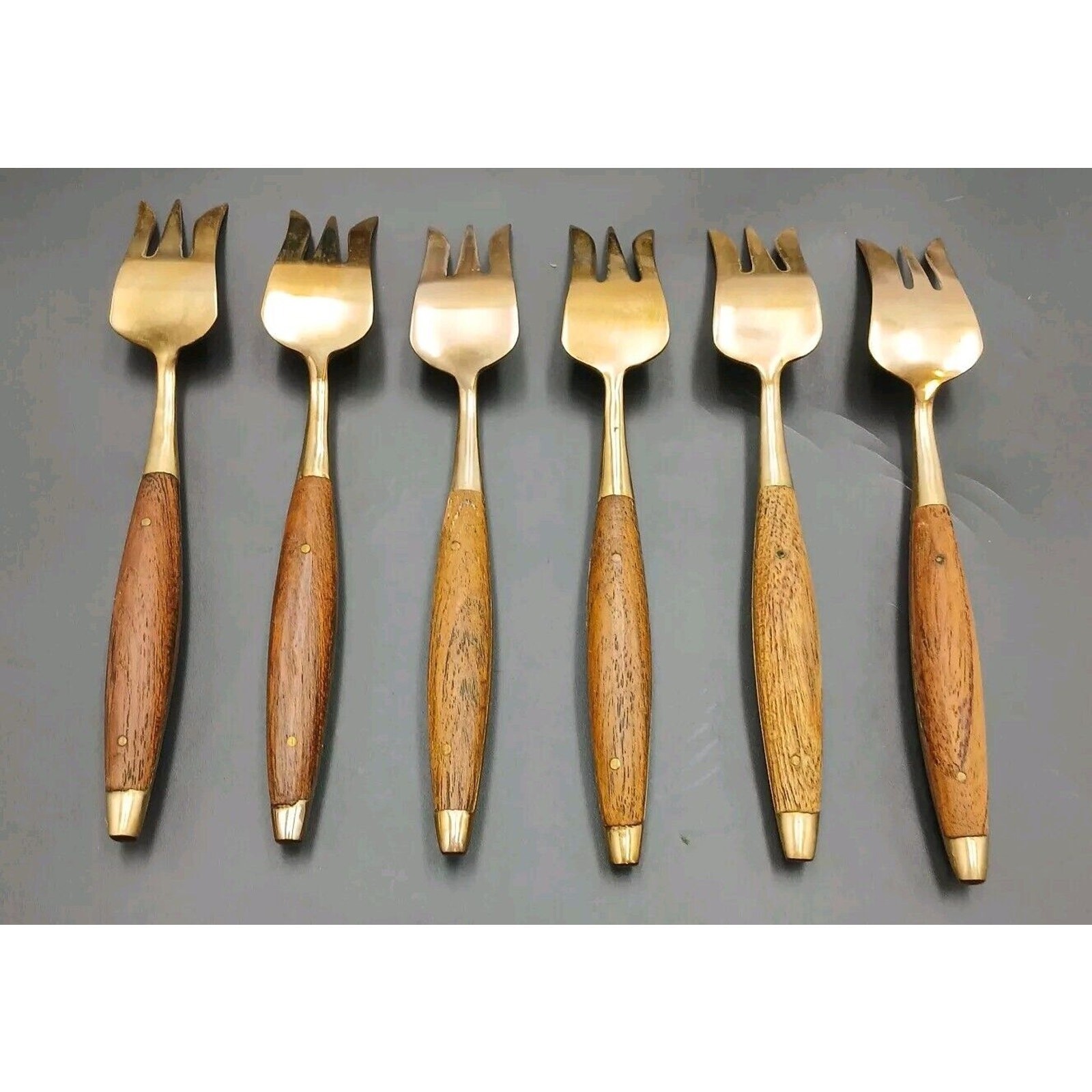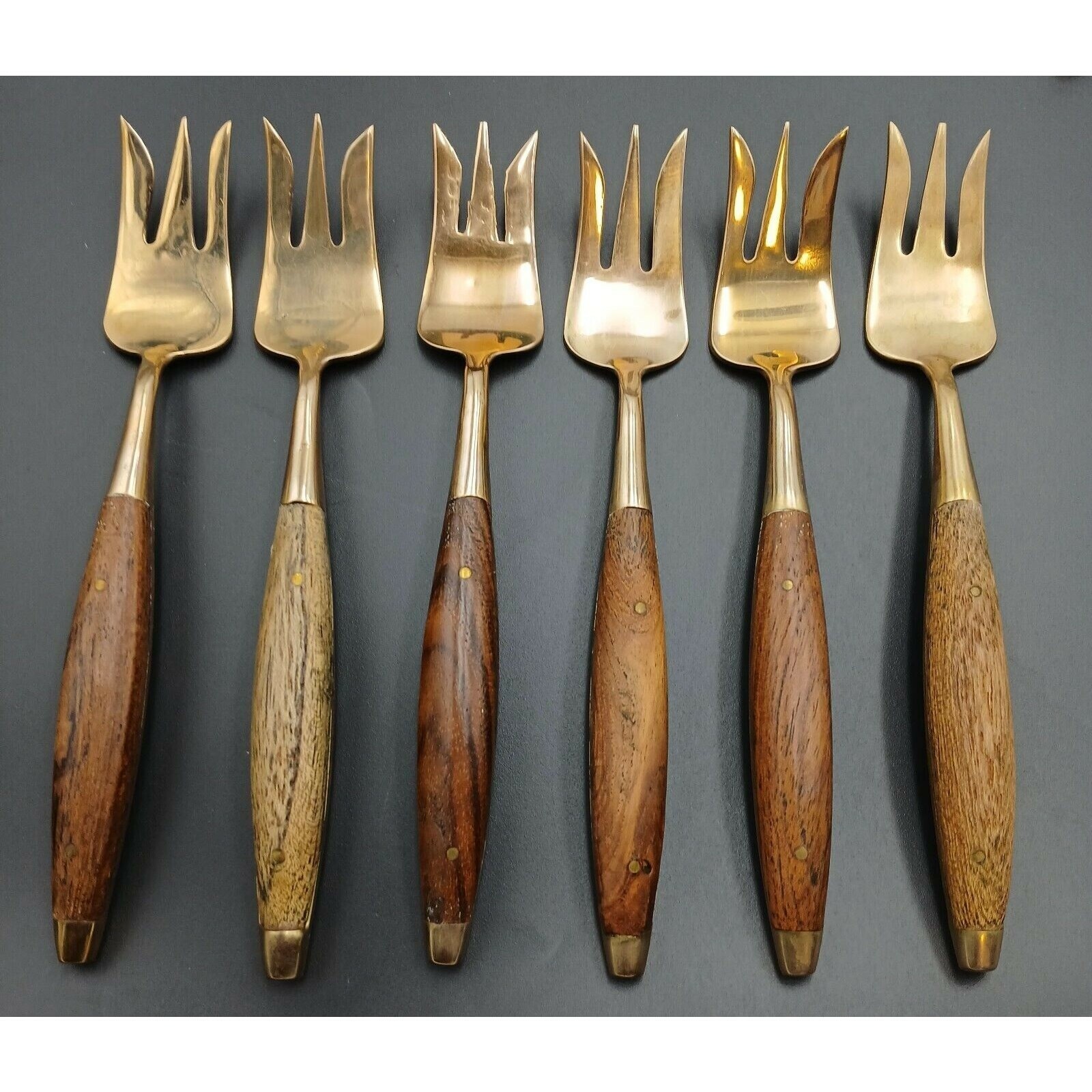 - Antique Rosewood Bronze and Wood Set of 6 Cocktail Dessert Fork Thailand Rare