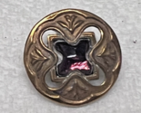 - Antique Round Metal Buttons Gold Tone Open Work w Purple Glass Center 1/2"
