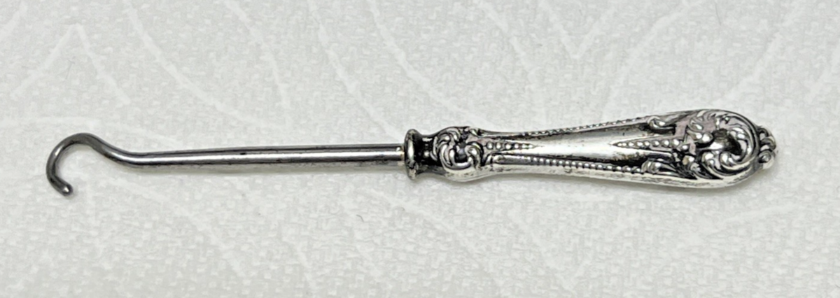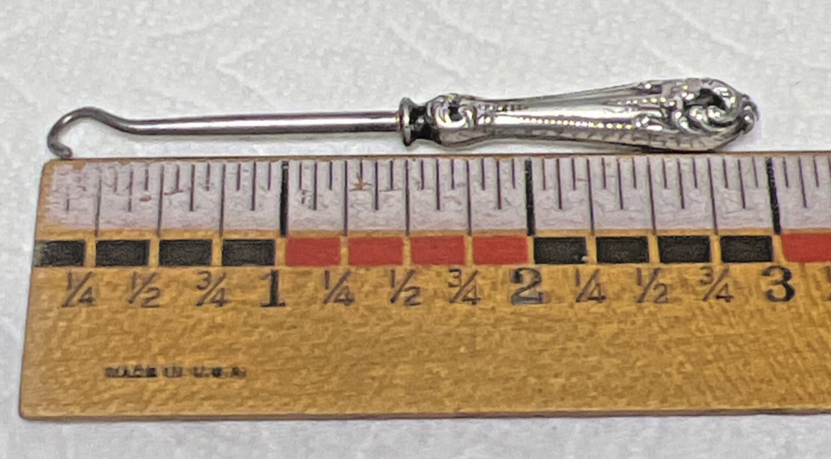 - Antique Sterling Silver Glove Button Hook 3 inches In Good Shape