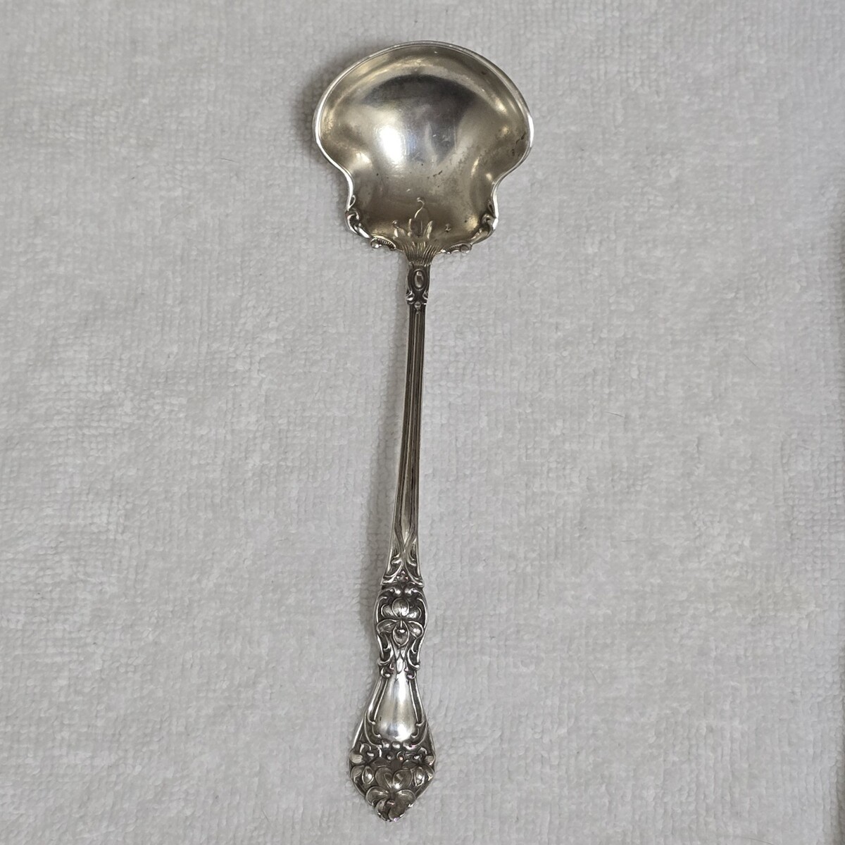2) Antique Manchester Mfg. Co. Sterling 6" Sauce Ladle Spoon Floral Art Nouveau No Mono 14g