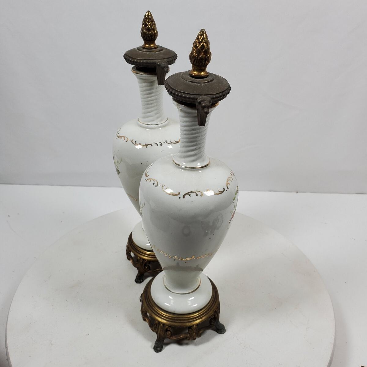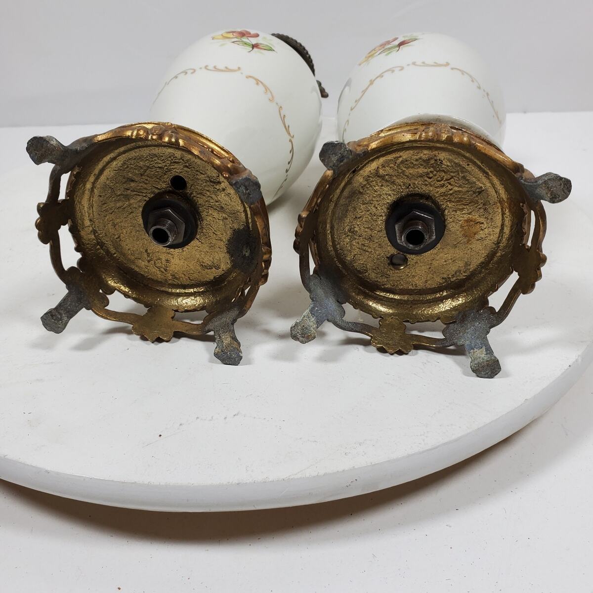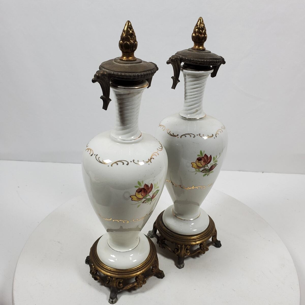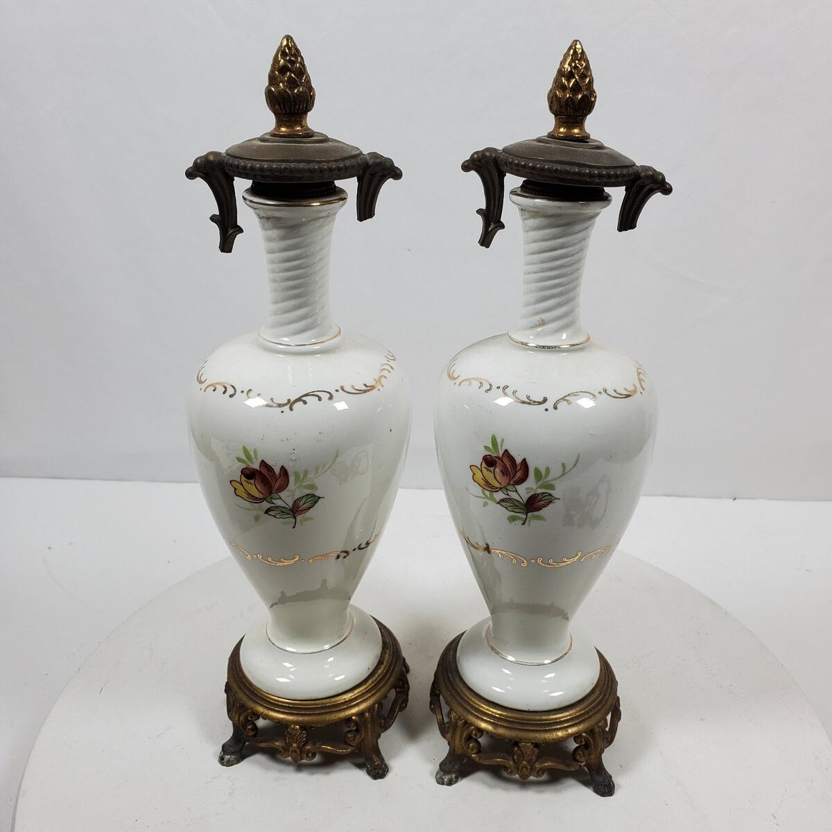 Antique Table Lamps Porcelain Victorian 12.5 Inch Tall Gold Trim NO WIRING