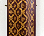 This antique tall decorative coal scuttle features a luxurious burgundy and gold damask pattern, adding a touch of elegance to any fireplace. Made of tin and originating from France, this piece is an original antique that brings a touch of history and sophistication to any home. Perfect for adding a stylish and unique touch to your fireplace or as a decorative accent in your home.