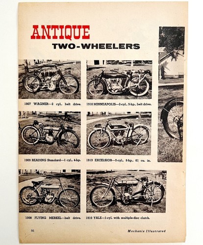 - Antique Two Wheelers Early Motorcycles Print 1961 Yale Merkel Ephemera DWS6C