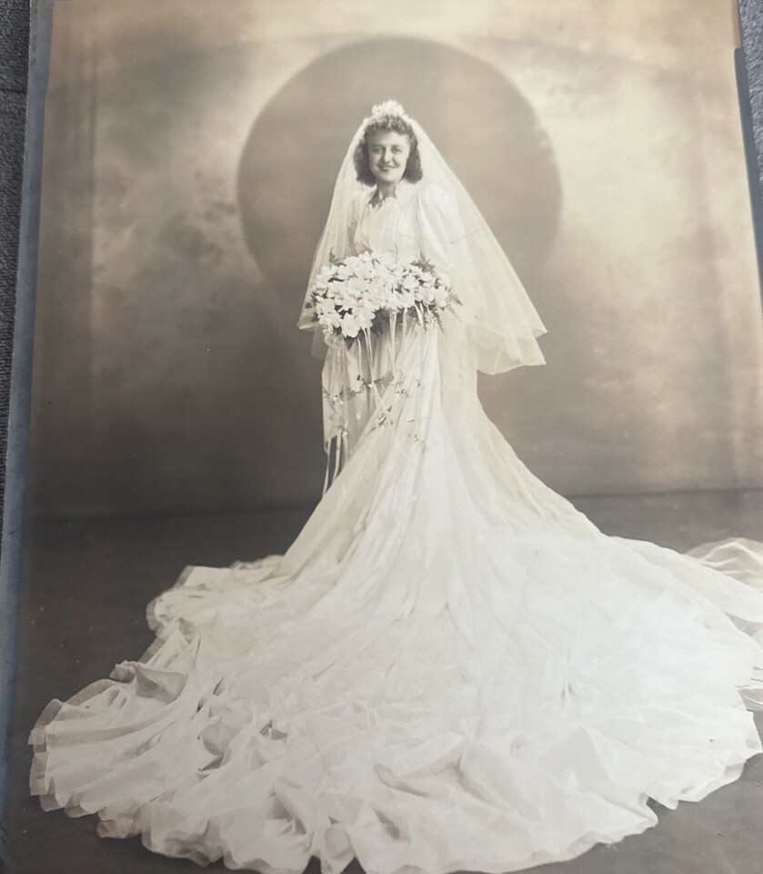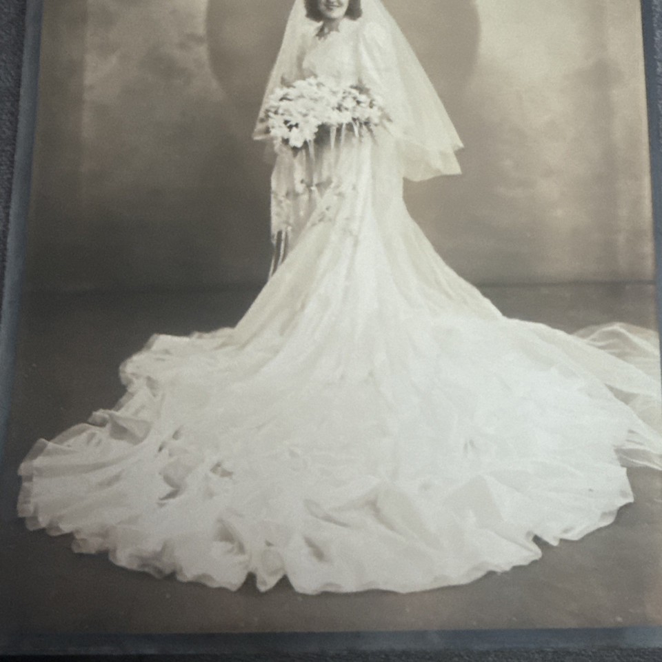 Antique VTG Photo Beautiful Bride Woman Wedding Day Dress Flowers 1940-50's ?...