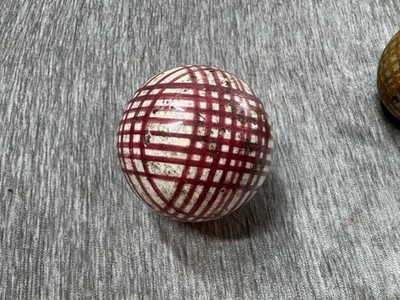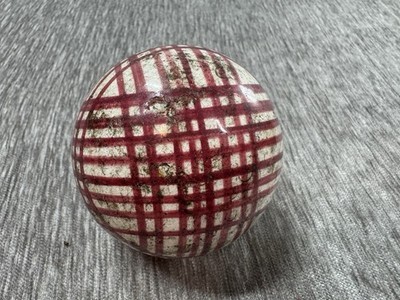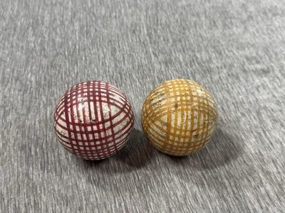 - Antique Victorian Scottish Carpet Balls Pair Yellow & Red Stripe Plaid Stoneware