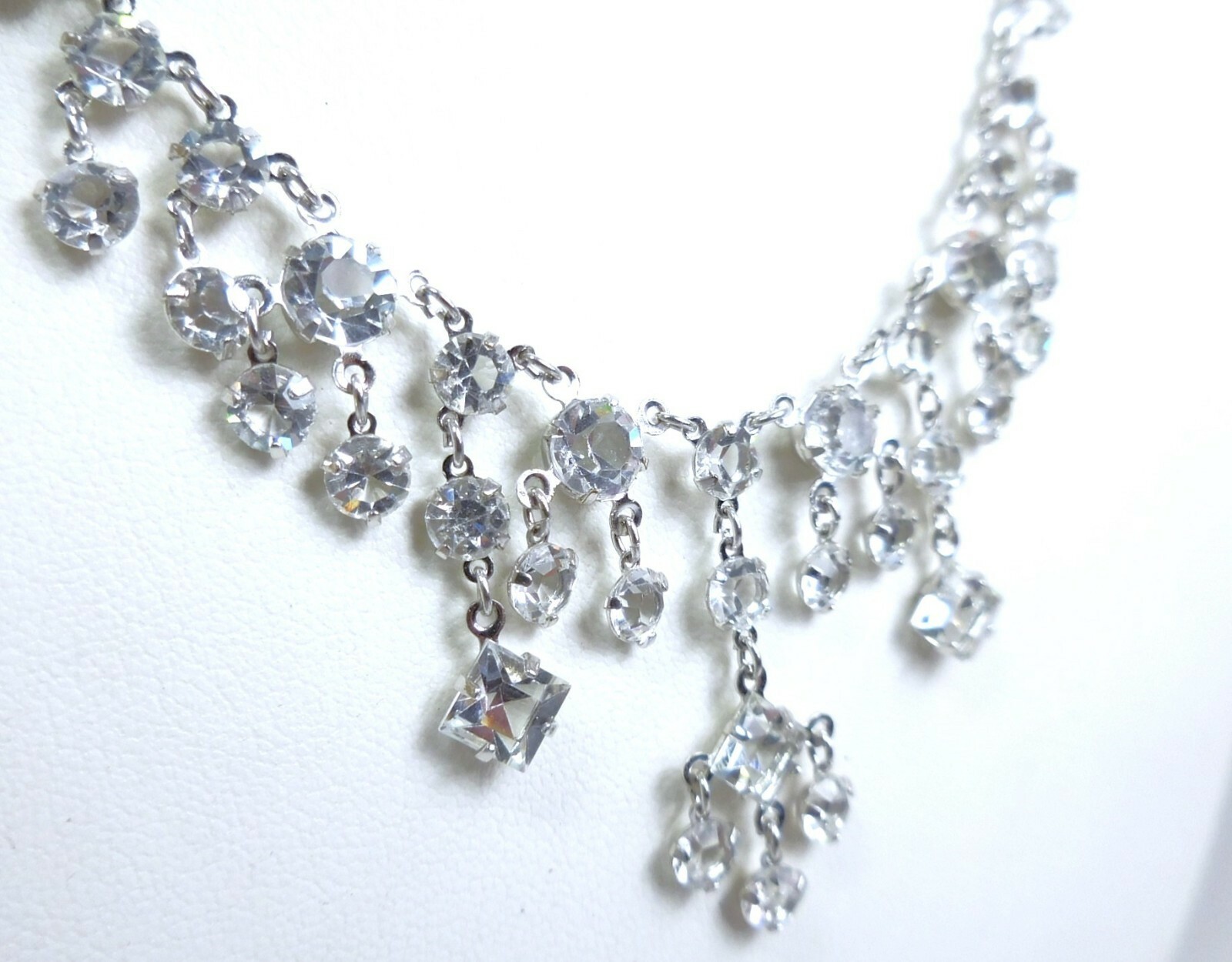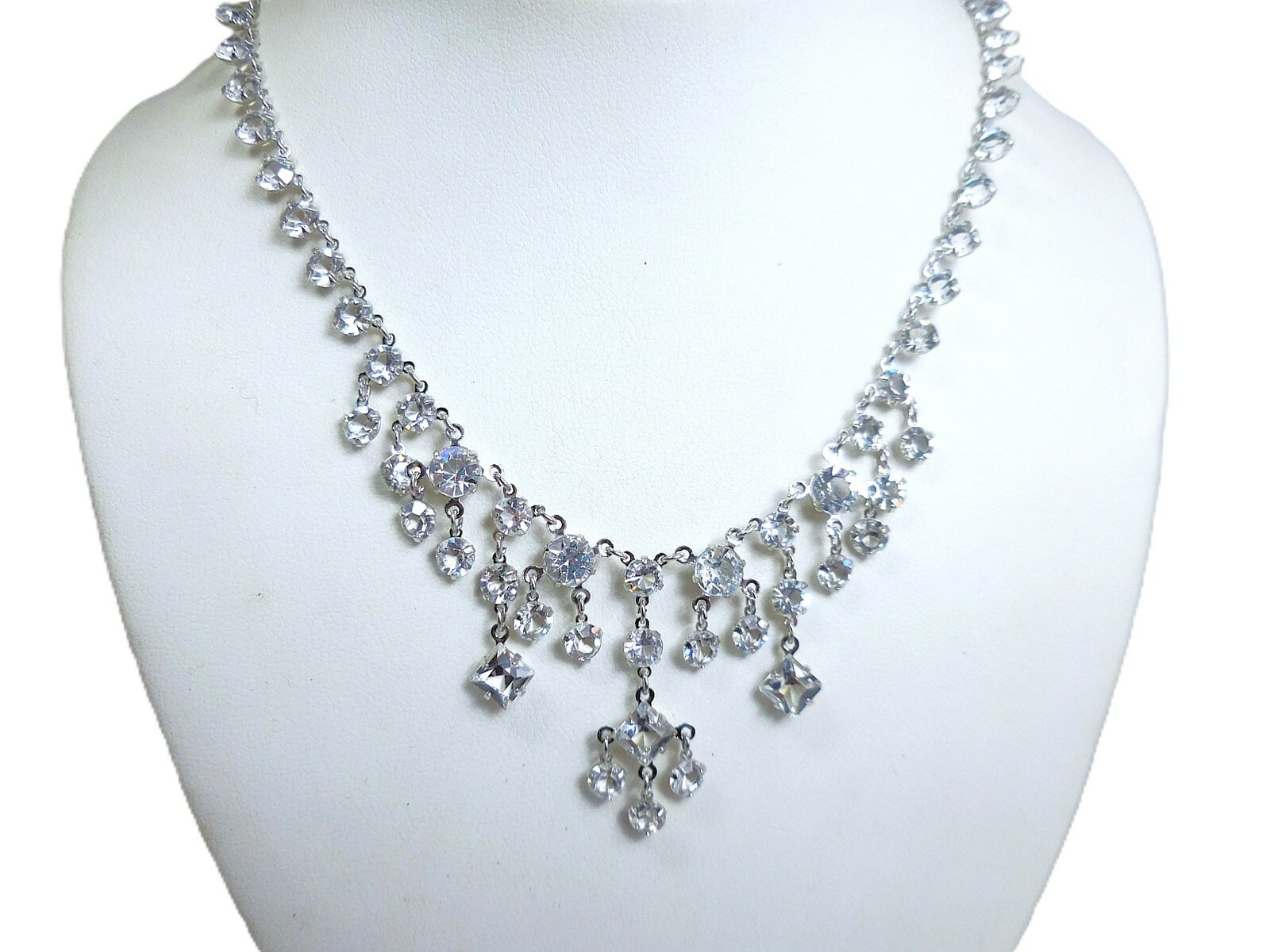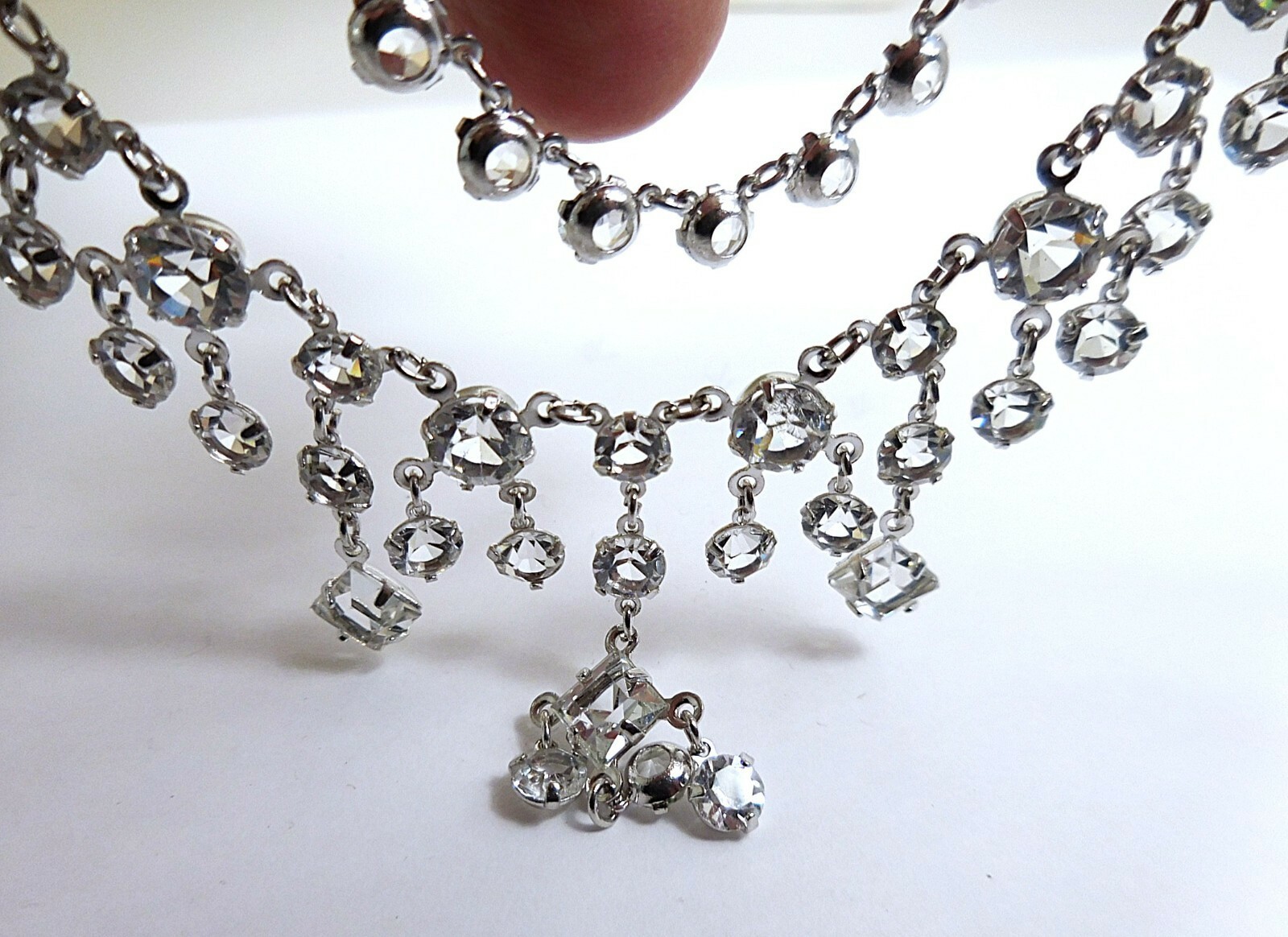 - Antique Vintage Art Deco Open Back Crystal Necklace