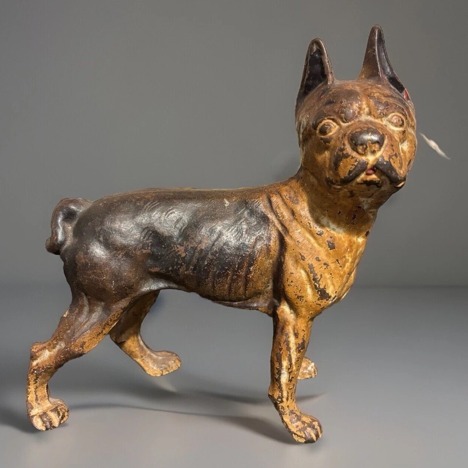 - Antique Vintage Doorstop Cast Iron Boston Terrier Bull Dog 10”