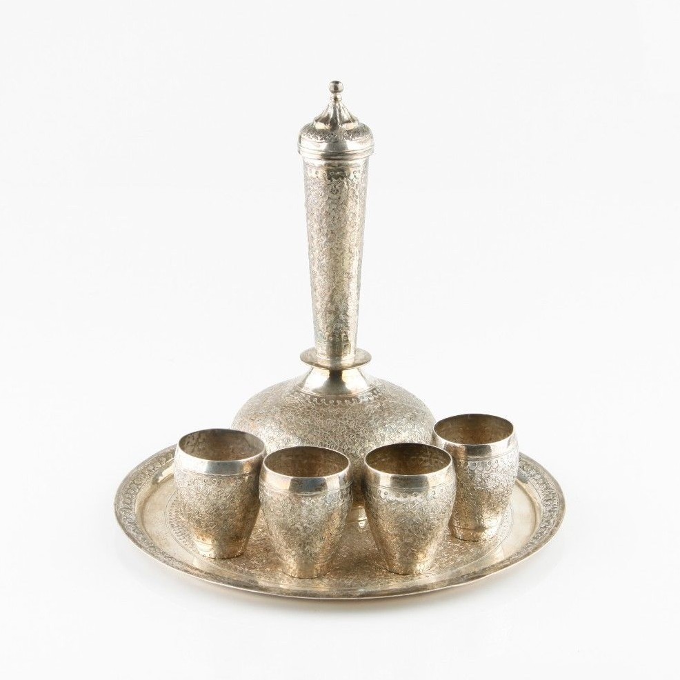 - Antique Vtg Persia 90 silver decanter, 4 glasses, tray- show original title ...