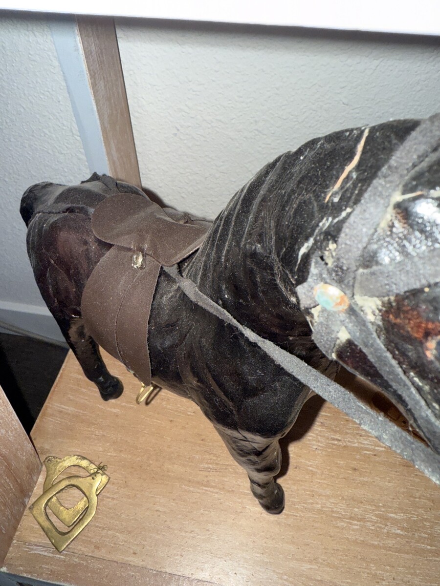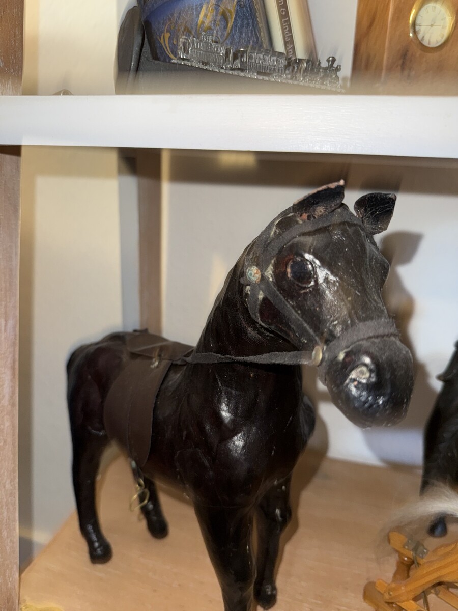 Antique Walking stance Leather Horse, with I imagine a plastic form of some sort.