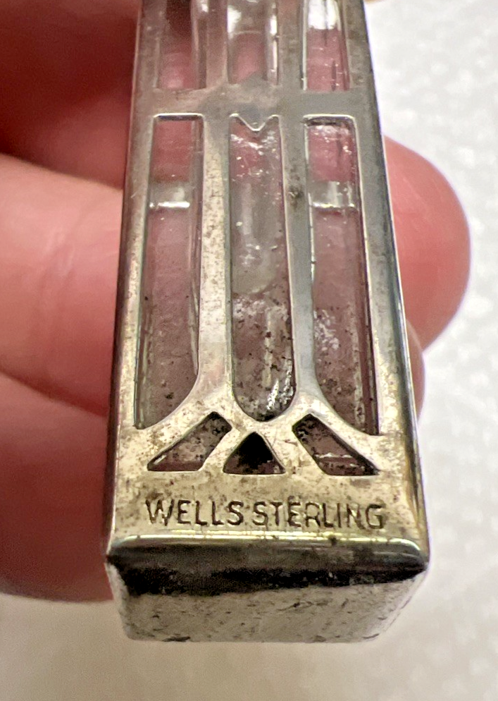 Antique Wells Sterling Silver & Crystal Miniature Perfume Scent Bottle In Cage