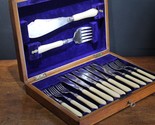 - Antique cutlery set in box. HM silver mounts. Hall Marks