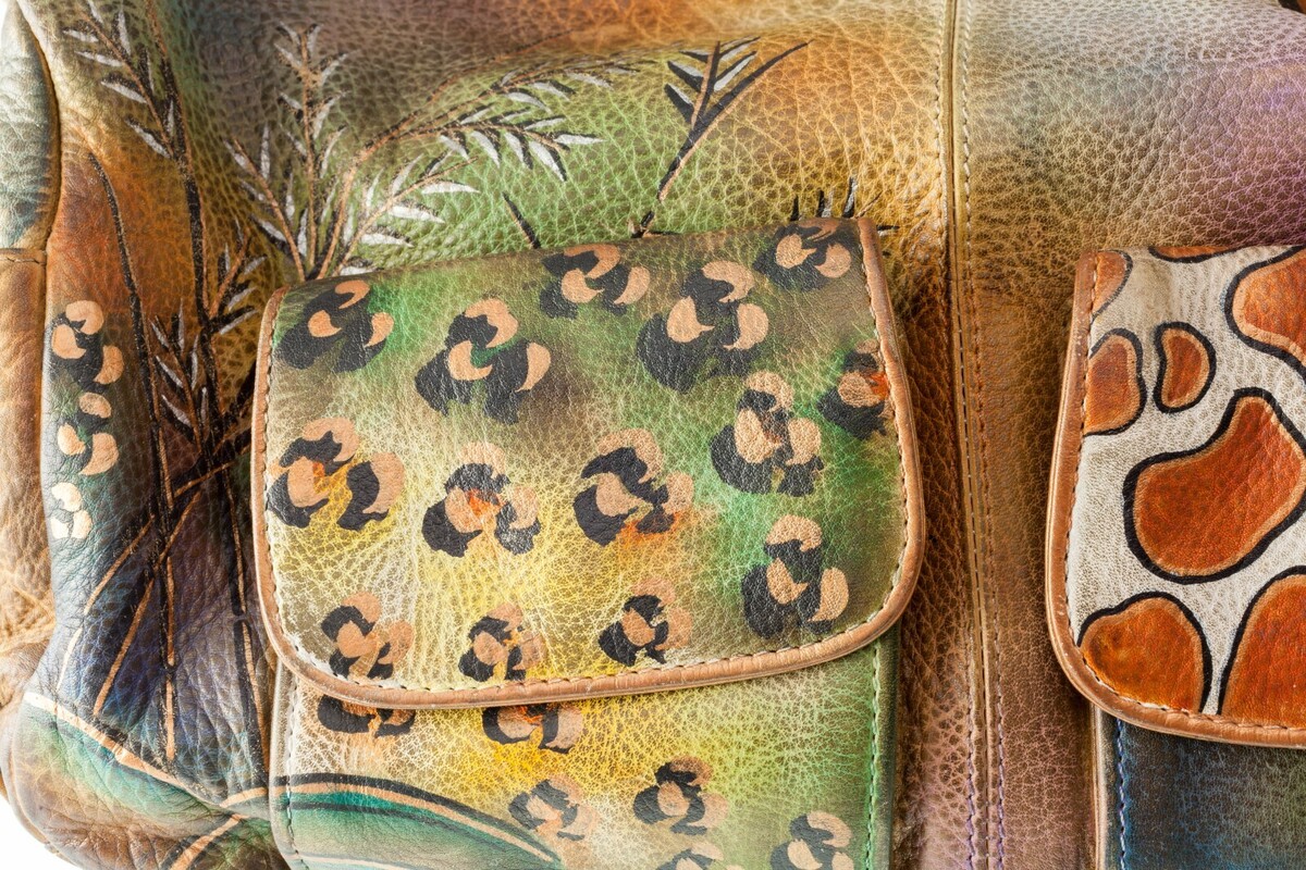Anuschka Lederdruck handbemalte Geldborse mit Taschen und Reißverschlüssen