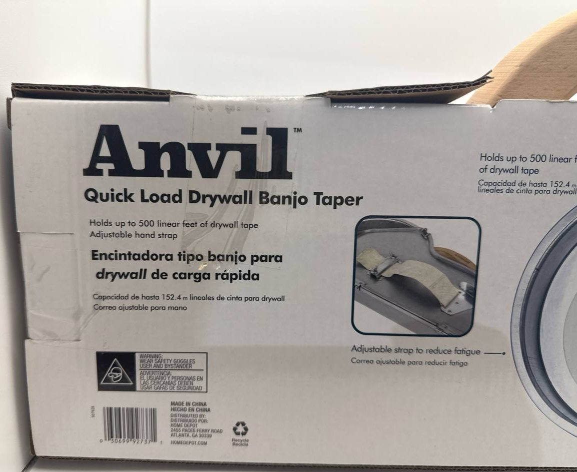 Item includes: Please note: This item includes 1x Anvil 8-3/4 in Quick Load Aluminum Drywall Taper Banjo with Wooden Handle Only ? As Pictured. No other accessories are included.