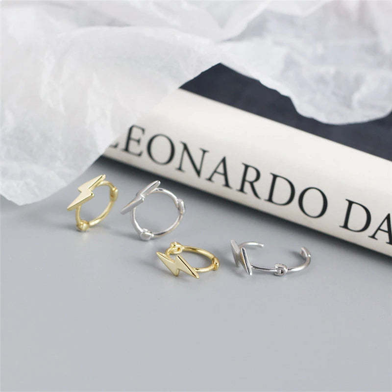 Anyco Earrings Sterling Silver Minimalist Mini Lightning Ear Buckle For Women