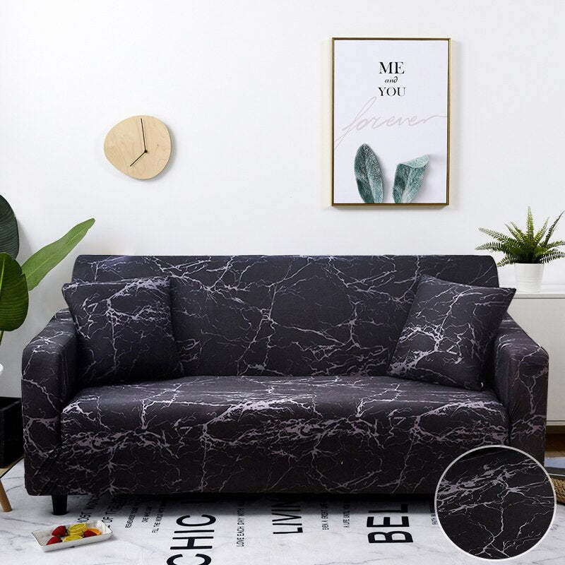 - Anyhouz 3 Seater Sofa Cover Marble Black Style and Protection For Living Room So