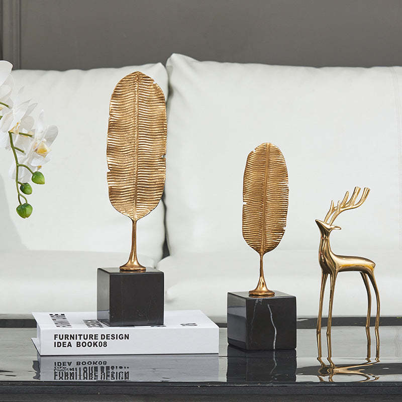 - Anyhouz 37.5cm Gold Feather Sculptures Tabletop Home Decor Modern Art Living Roo