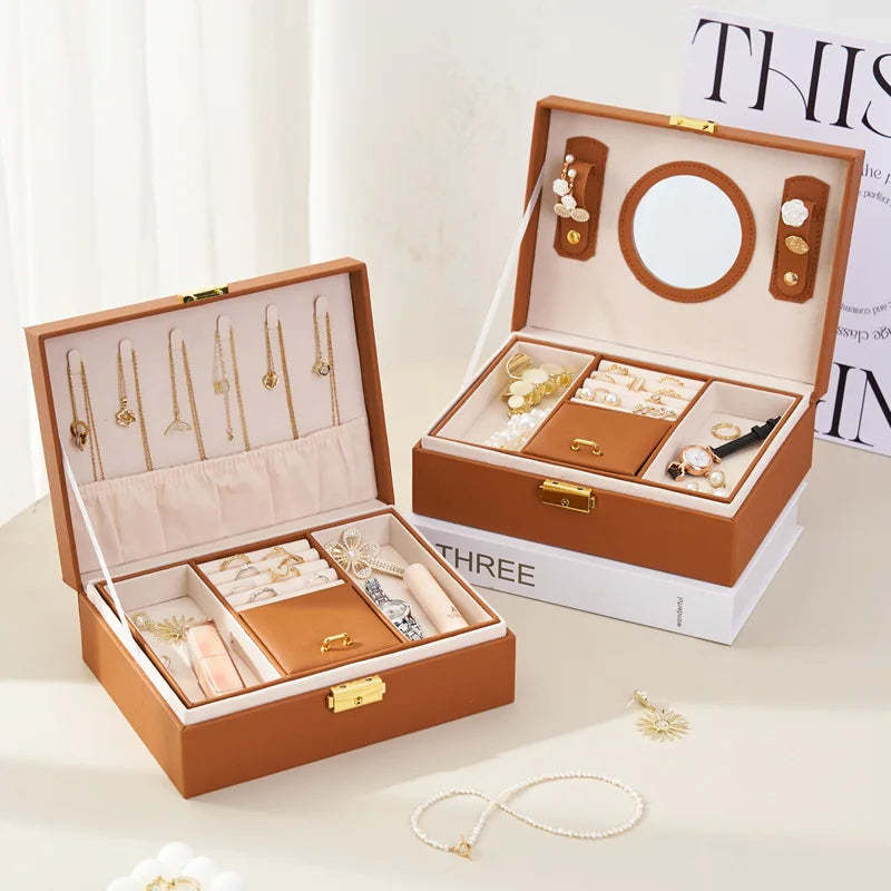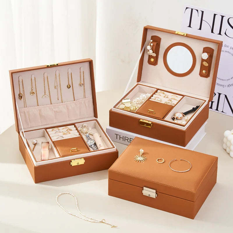 - Anyhouz Jewelry Box Brown Large Capacity With Lock Soft Lining Leather Organizer
