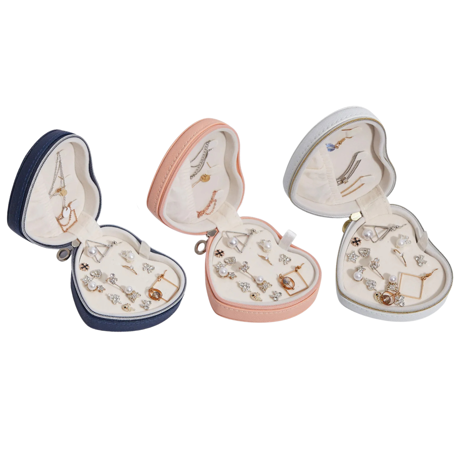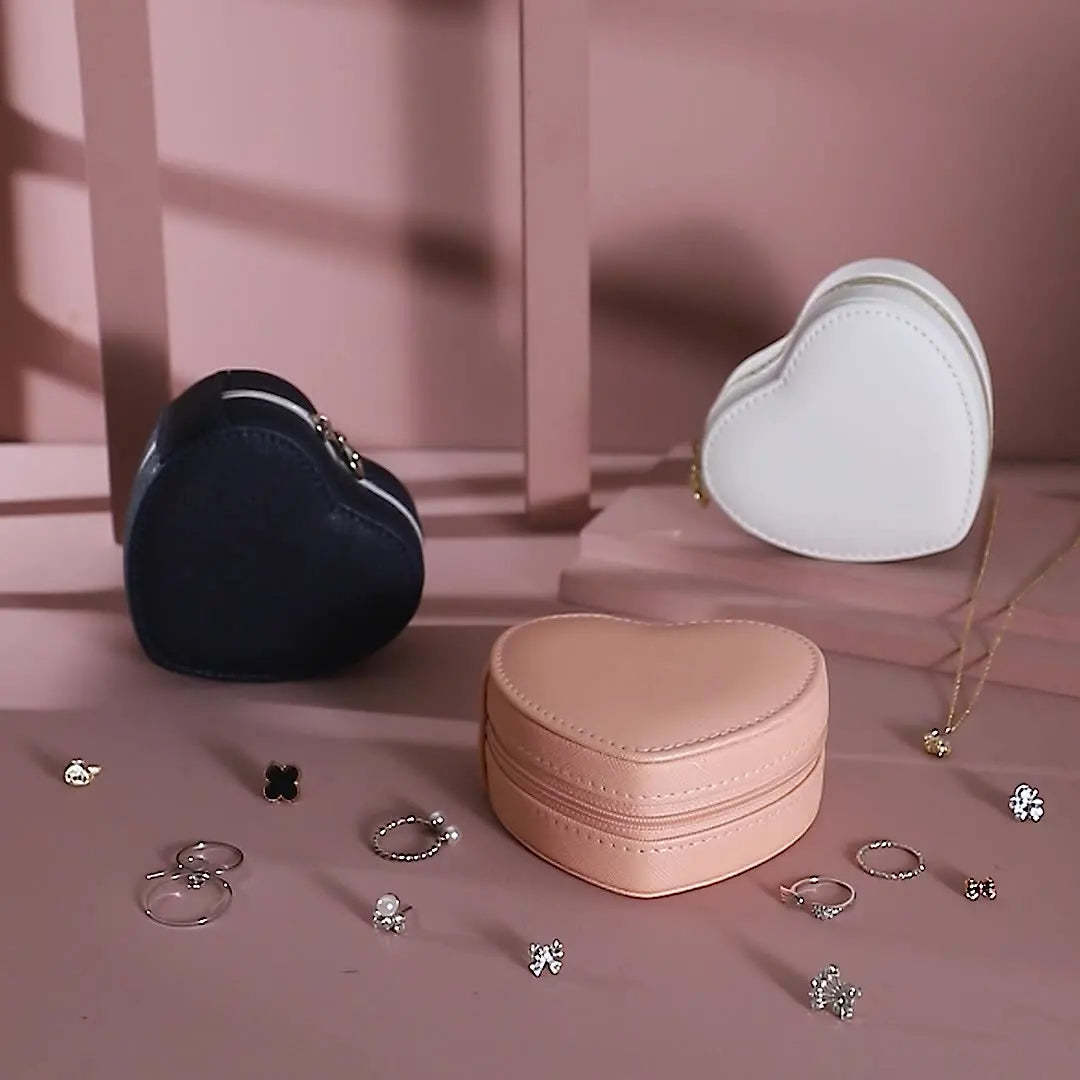 - Anyhouz Jewelry Box Heart Shaped Compact Portable Travel Case Zipper Lock