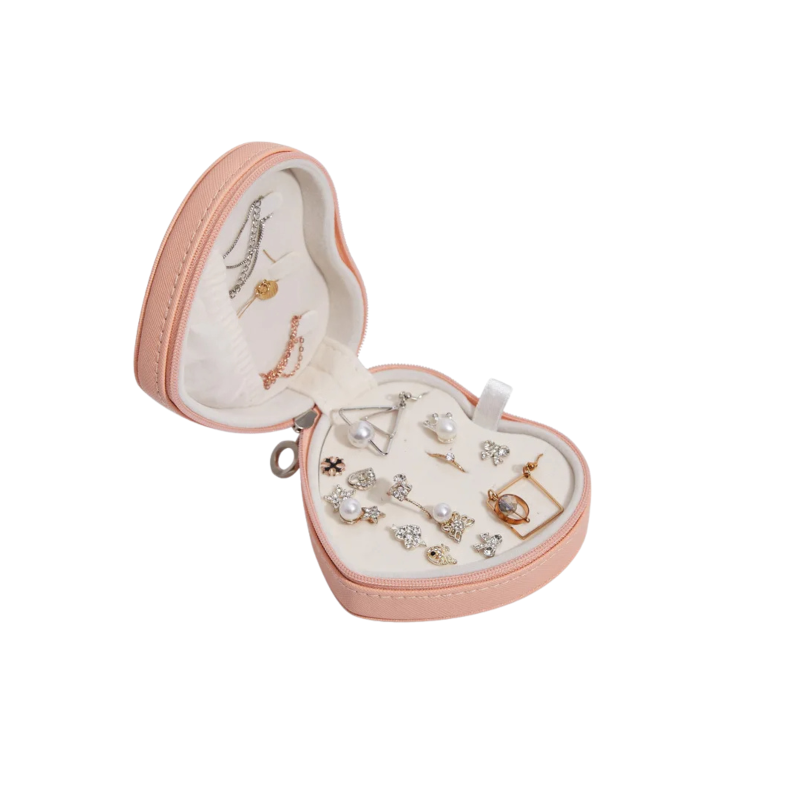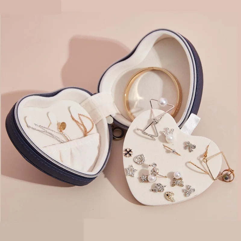 Anyhouz Jewelry Box Heart Shaped Compact Portable Travel Case Zipper Lock