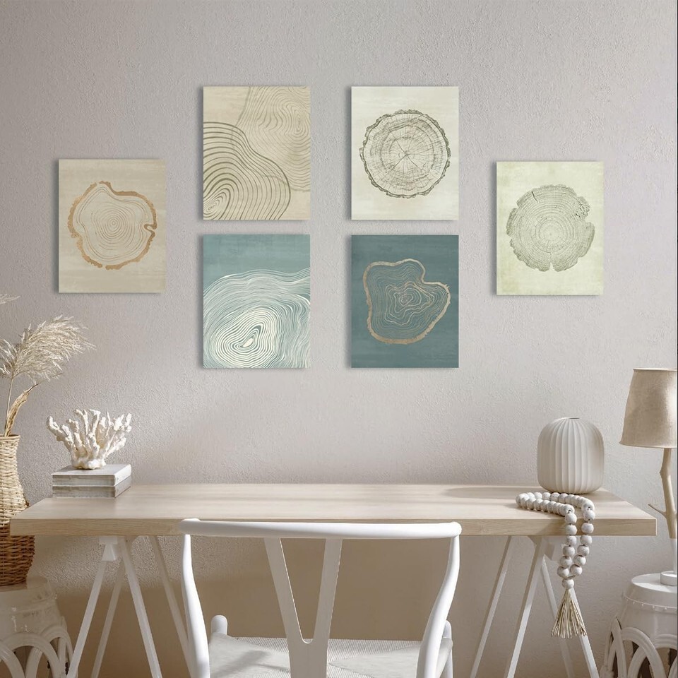 This set of 6 tree ring canvas prints is a unique and modern way to add texture and style to any room in your home. Each print is an abstract representation of the natural beauty of tree rings, and is printed on high-quality canvas. These minimalist canvas wall art pieces are a great way to add a touch of nature to your living room, bedroom, office, or any other room in your home. They are easy to hang and complement any decor style. Whether you're looking to create a calming atmosphere or add a pop of color to your space, these tree ring canvas prints are a great choice.