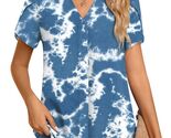 - Aodemo Women's Blue Tie Dye Chiffon Blouse V Neck Short Sleeve Size XL