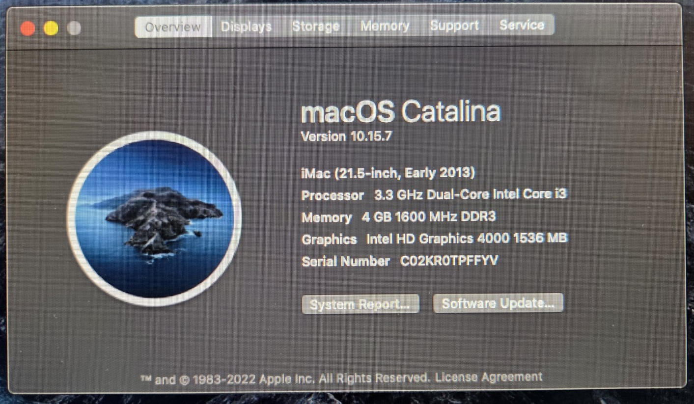 - Apple iMac A1418 EMC2545 21.5" i3-3225 3.3GHz 4GB DDR3 500GB HDD macOS Catalina