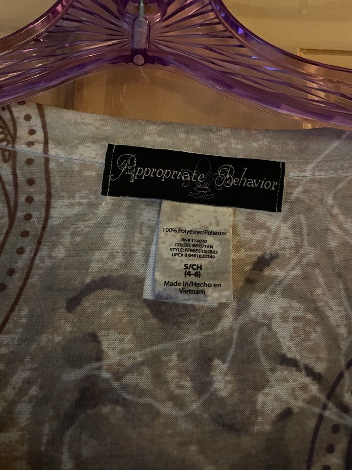 This women's t-shirt in size small features a fun and eye-catching Multicolor design that will make you stand out. The top, branded as Appropriate Behavior, is perfect for casual outings with friends or as a statement piece for your wardrobe. It is made from comfortable and durable materials, ensuring that it will last for a long time. Whether you're a fan of the brand or just looking for a unique addition to your closet, this top is a great choice.
