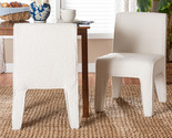Features: Fully upholstered design with no exposed wood creating a serene presentation Constructed from Solid Tropical Wood(Mixed Species) and Engineered Wood Refined silhouette blends well with a variety of room layouts and styles Angled legs provide excellent stability while creating a sleek silhouette Padded with foam and upholstered in boucle fabric Arrives Fully Assembled Set Includes: Two (2) Dining Chairs