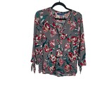 - Apt. 9 XL Careerwear Hi Low Hem Blouse Popover Striped Floral Tie Sleeve V-Neck