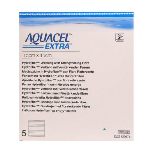 - Aquacel Extra Hydrofiber Dressing 15cmx15cm x 5 (Ulcers, Post-Op, Burns)