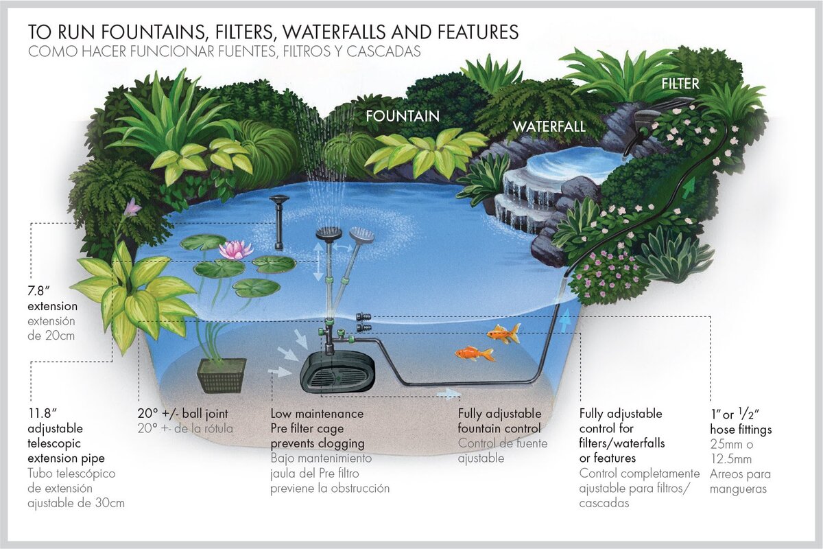 - Aquagarden Pennington, Universal 500 All in One Submersible Pond & Water Pump,