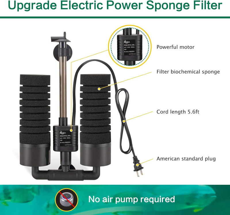 - Aquarium Electric Power Sponge Filter,3W/5W Silence Submersible Foam Filte
