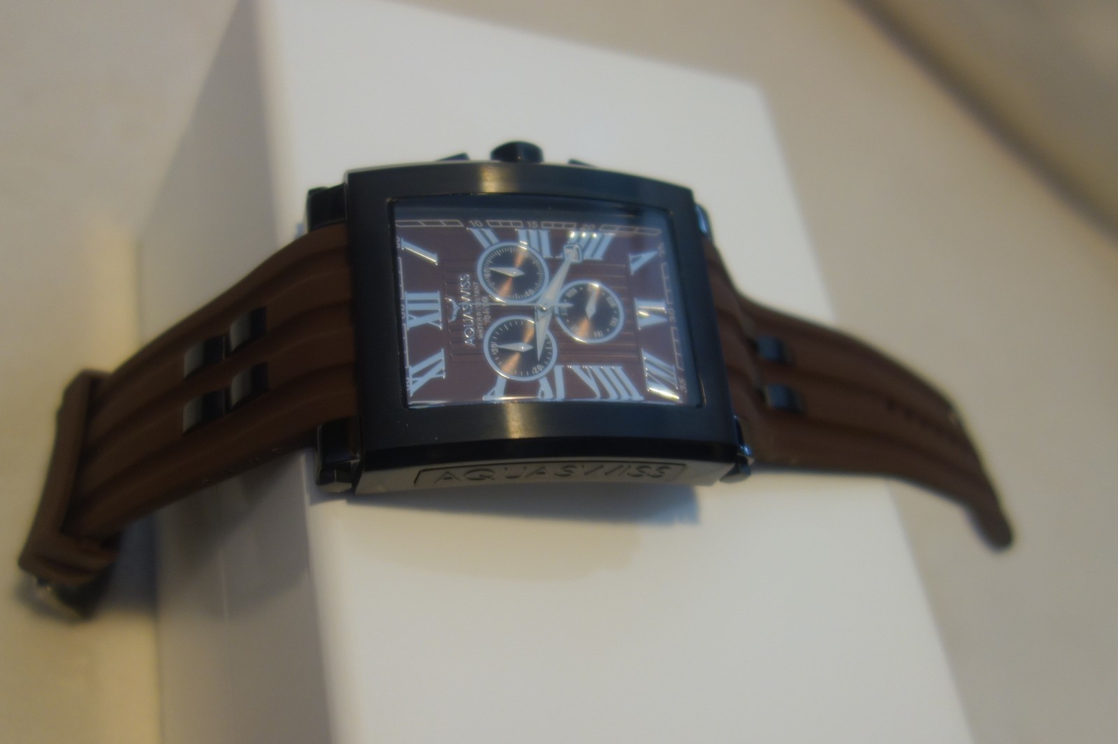 - AQUASWISS Men's WATCH Chronograph brown bend black Case NEW $1600