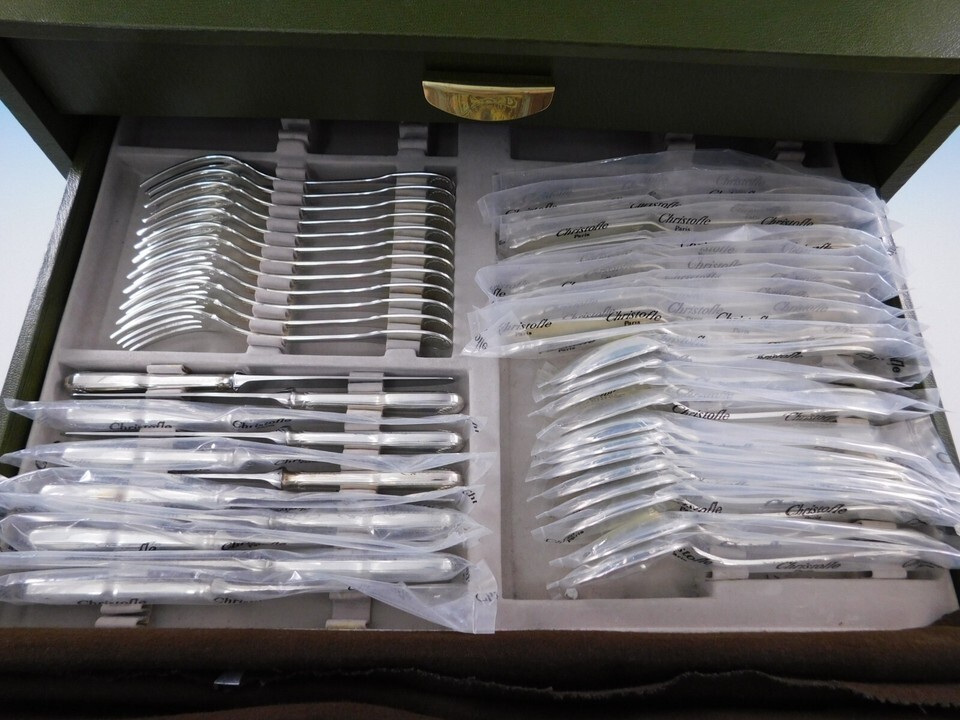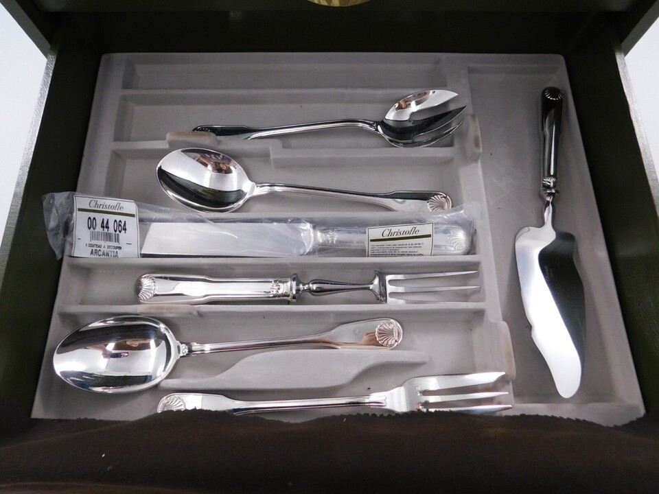 - Arcantia Vendome Christofle Silverplate Flatware Set 12 Service 121 pcs Unused