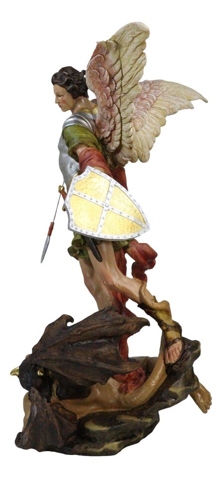 - Archangel Saint Michael With Spear And Shield Trampling The Devil Statue 20"H
