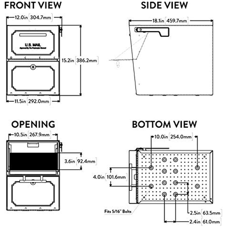 Accepts parcels 9. 75-in x 6. 5-in x 2-in to 9. 75-in x 4-in x 2. 75-in