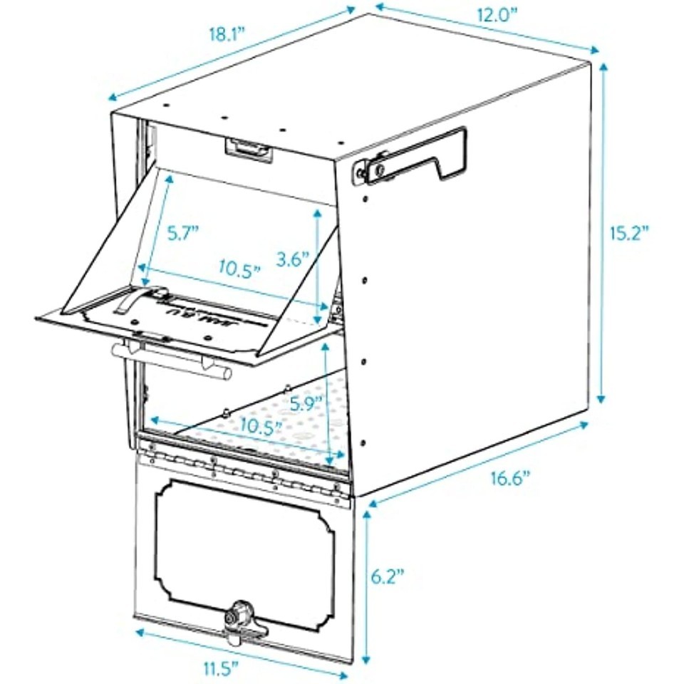 The Oasis Classic offers and oversized hopper door design with internal security baffle, extra-large locking lower storage compartment and modern styling. It is constructed of powder coated heavy gauge galvanized steel panels with stainless steel hinges for extra durability. The Oasis Classic protects deliveries with an enhanced locking system, pry-resistant lock bracket and Weather-Tite rubber seals. Do not overtighten nuts or it may damage the threaded studs