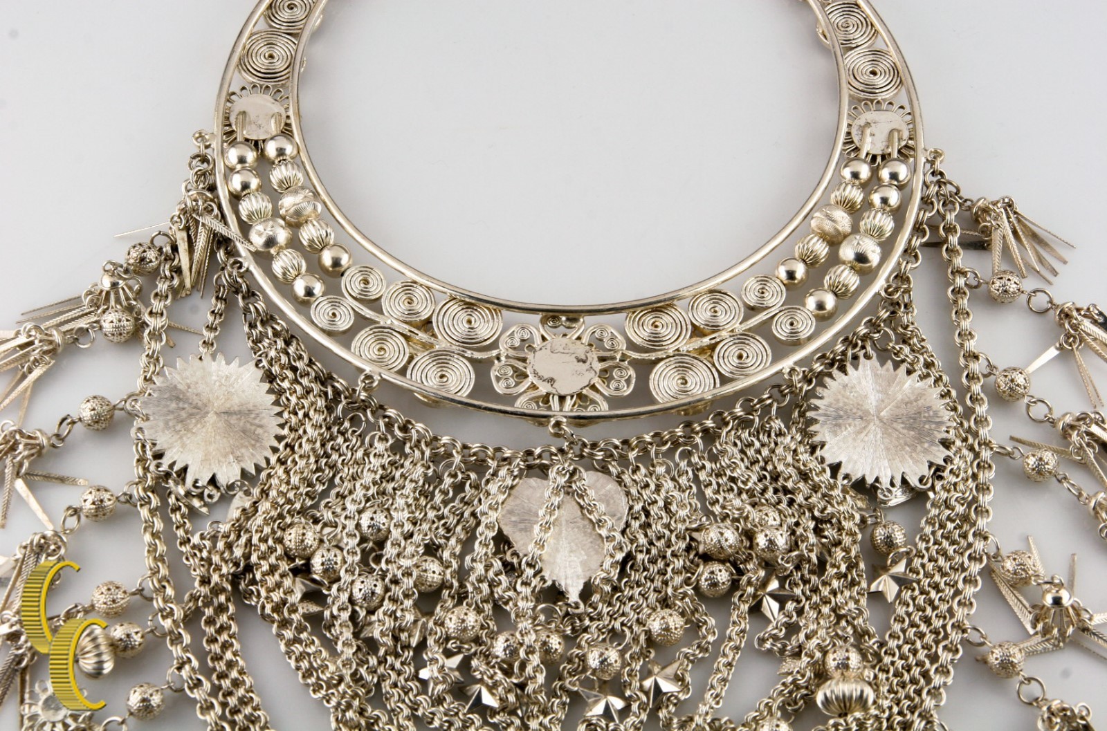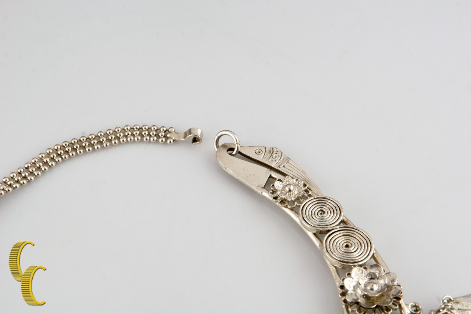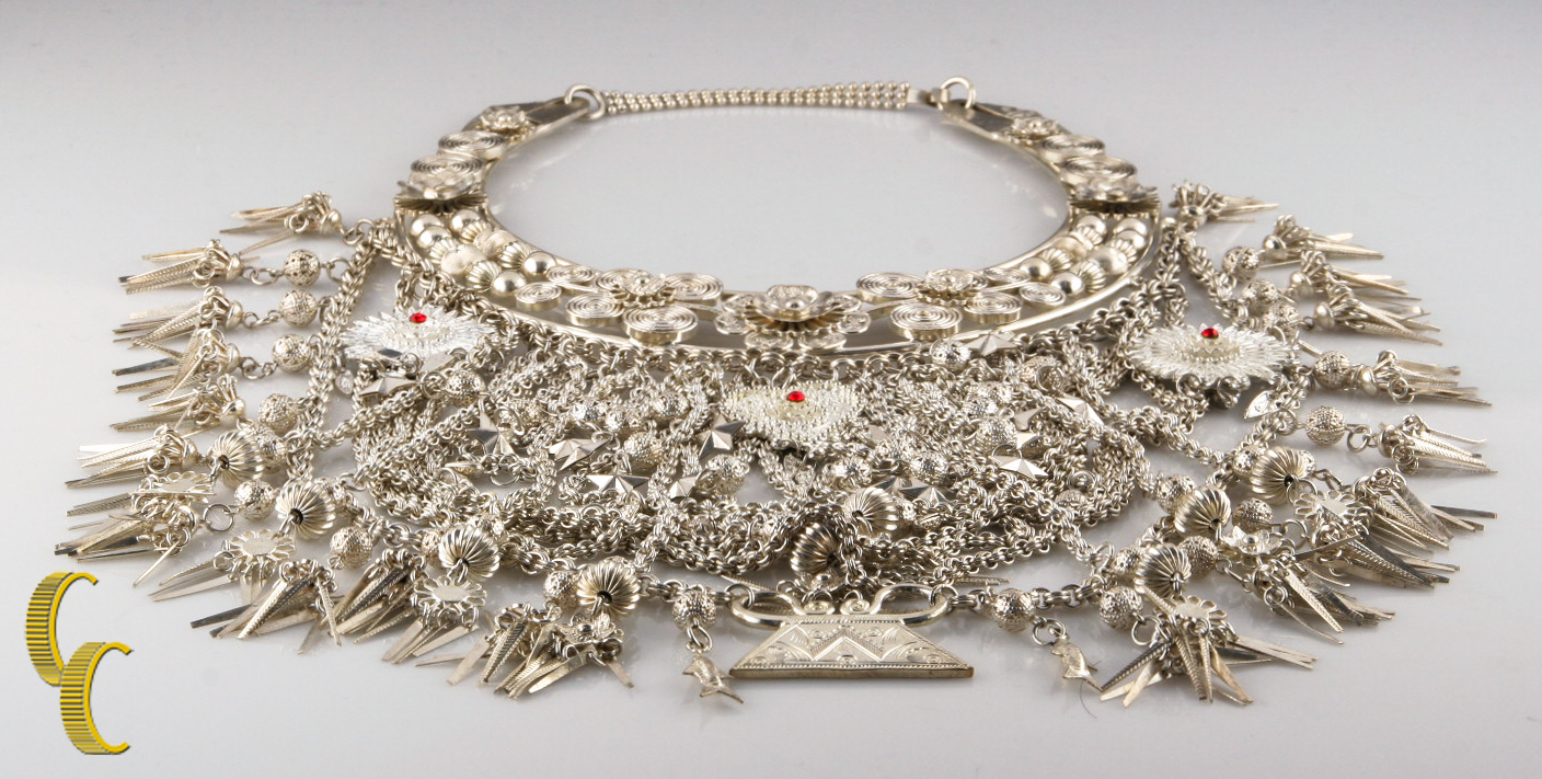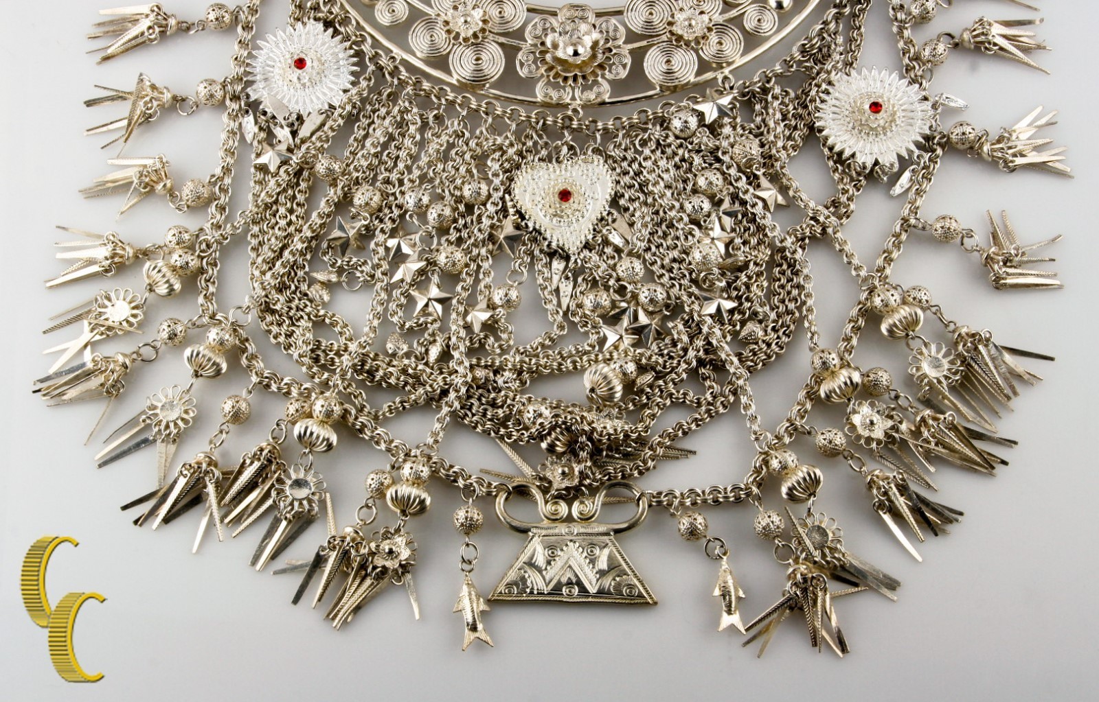 Collier Silver Bib avec des fleurs pendantes, Stars et de la masse totale du centre rouge -