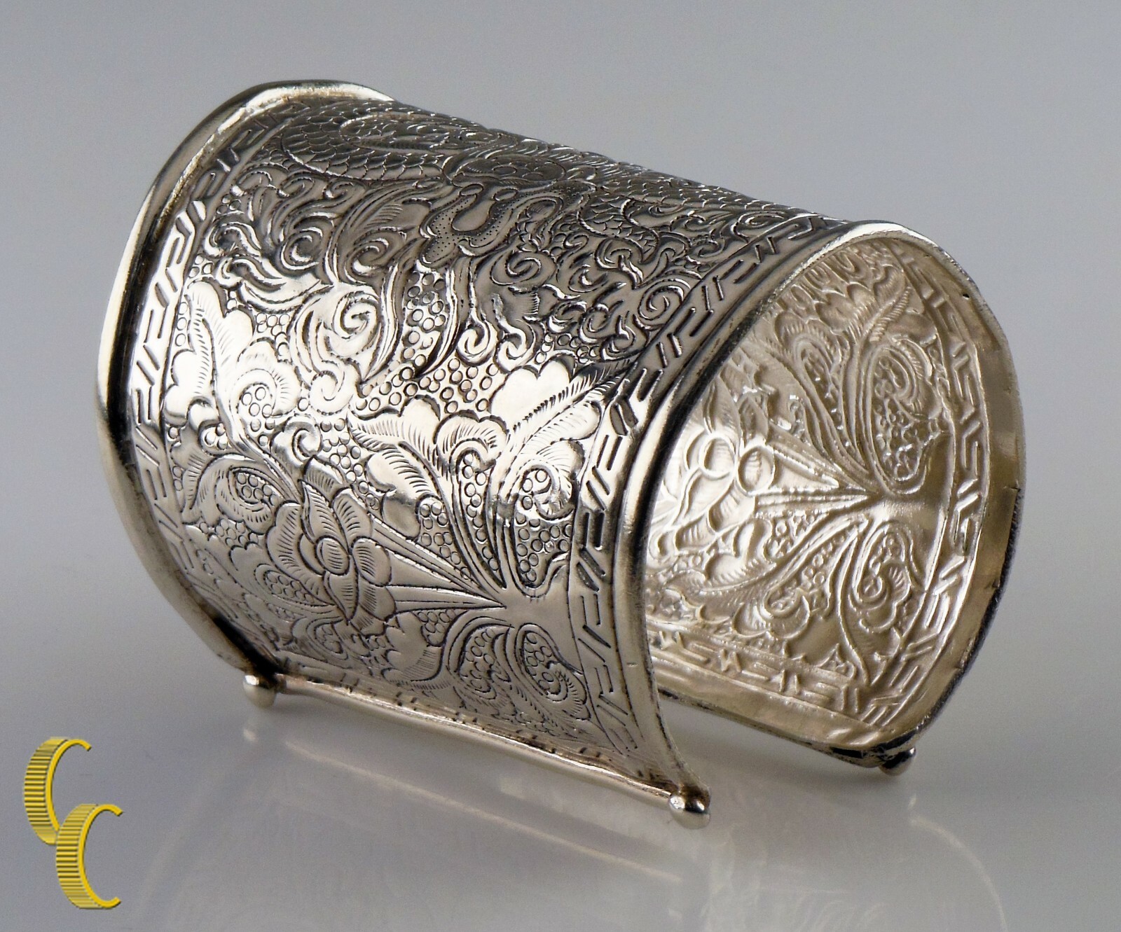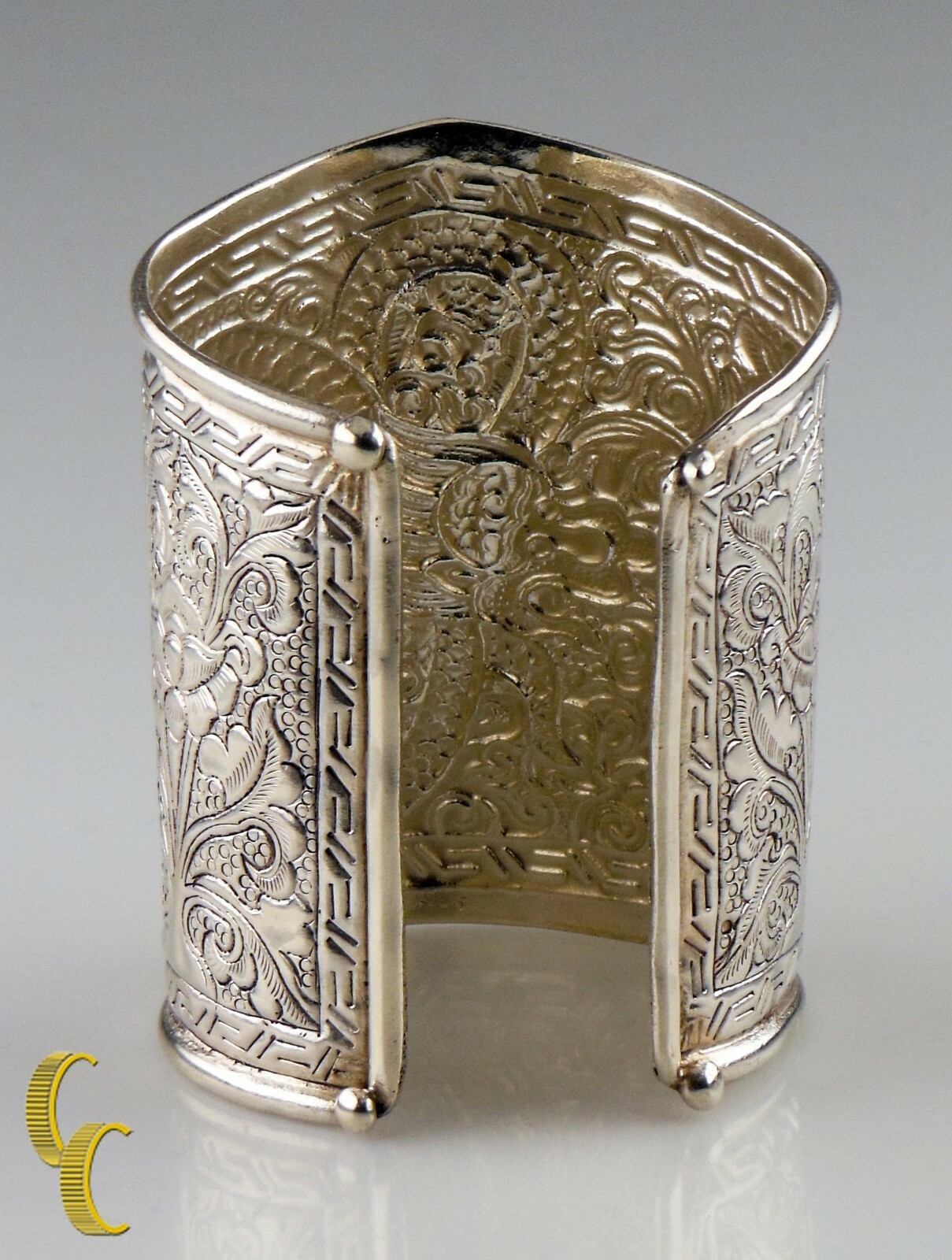 Argent Sterling .925 Manchette Bracelet Pogona Fleur Feuille Motif Cadeau Idéal