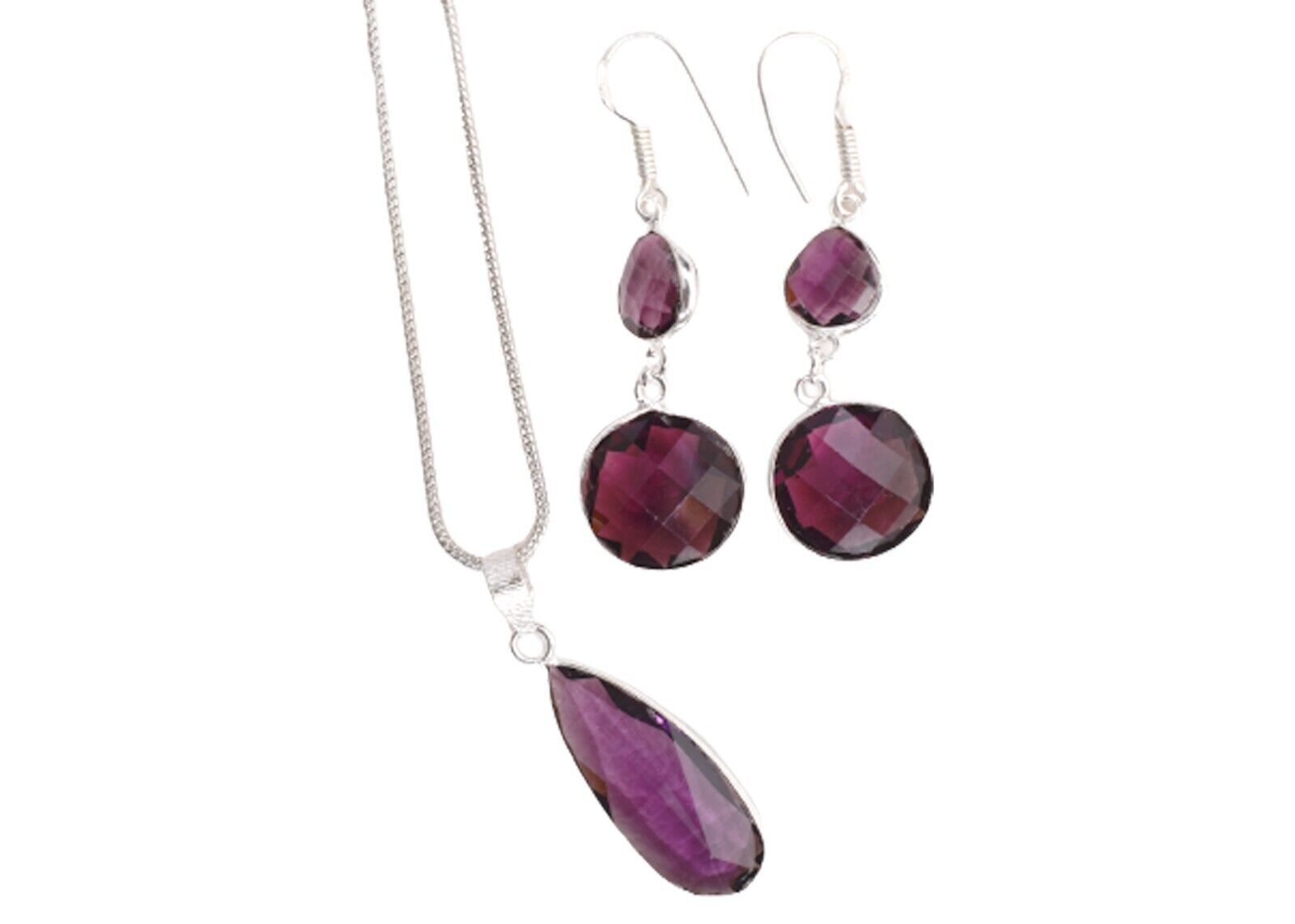 - Argent Sterling Gemme Améthyste Fabriqué Main Pendentif Boucles Femme Fête Set
