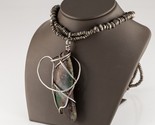 - Argent Sterling Perlé Collier Avec Grand Wire-Suspended Lissées Turquoise