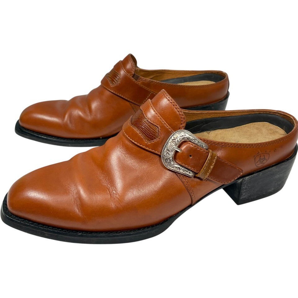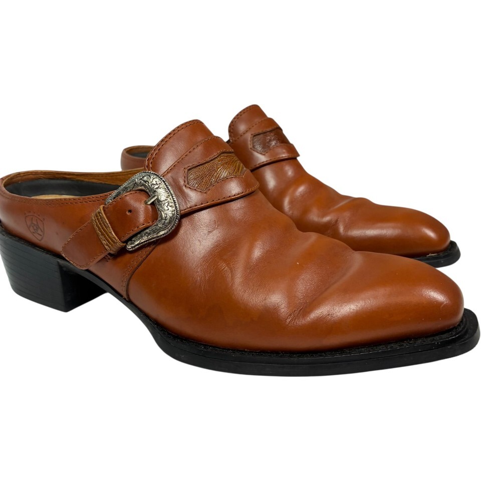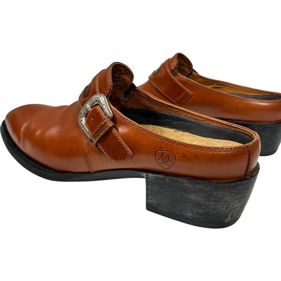 - Ariat Western Cowgirl Mules Block Heel Brown Leather Buckle 16728 Women's 9B